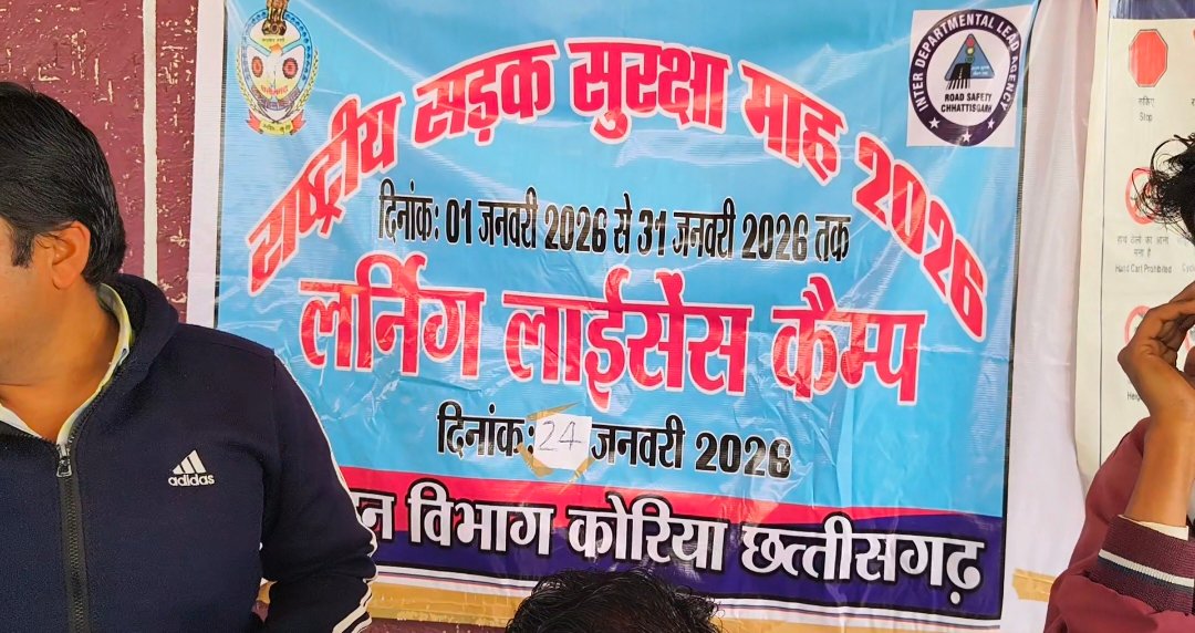 सड़क सुरक्षा माह के अंतर्गत इन दिनों एमसीबी जिले के खड़गवां जनपद पंचायत क्षेत्र में कैम्प लगाया जा रहा है  कोरिया आरटीओ के द्वारा सड़क सुरक्षा कार्यक्रम में क्षेत्र के लोगों ने बढ़ चढ़कर हिस्सा लिया जिसमें आरटीओ के पास लर्निंग लाइसेंस के लिए सैकड़ों फ्रॉम जमा किया गया ।